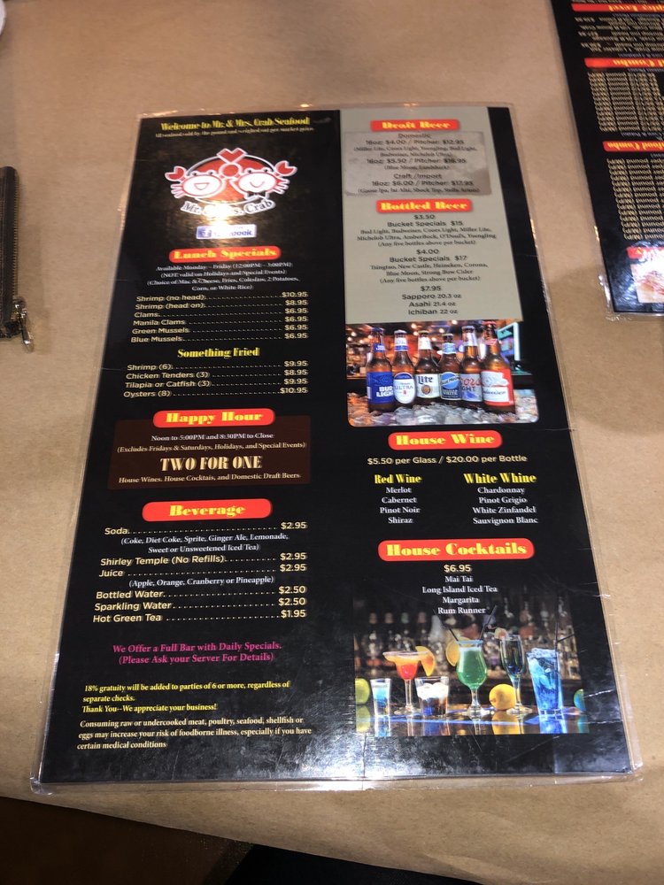 Introducing the menu at Mr and Mrs Crab, located in Orlando, FL, is a delightful journey into the world of seafood. This casual eatery specializes in soups and seafood boils, perfect for those looking to dive into an ocean of flavor. The ambiance is vibrant, with a nautical theme that sets the stage for a fun dining experience.